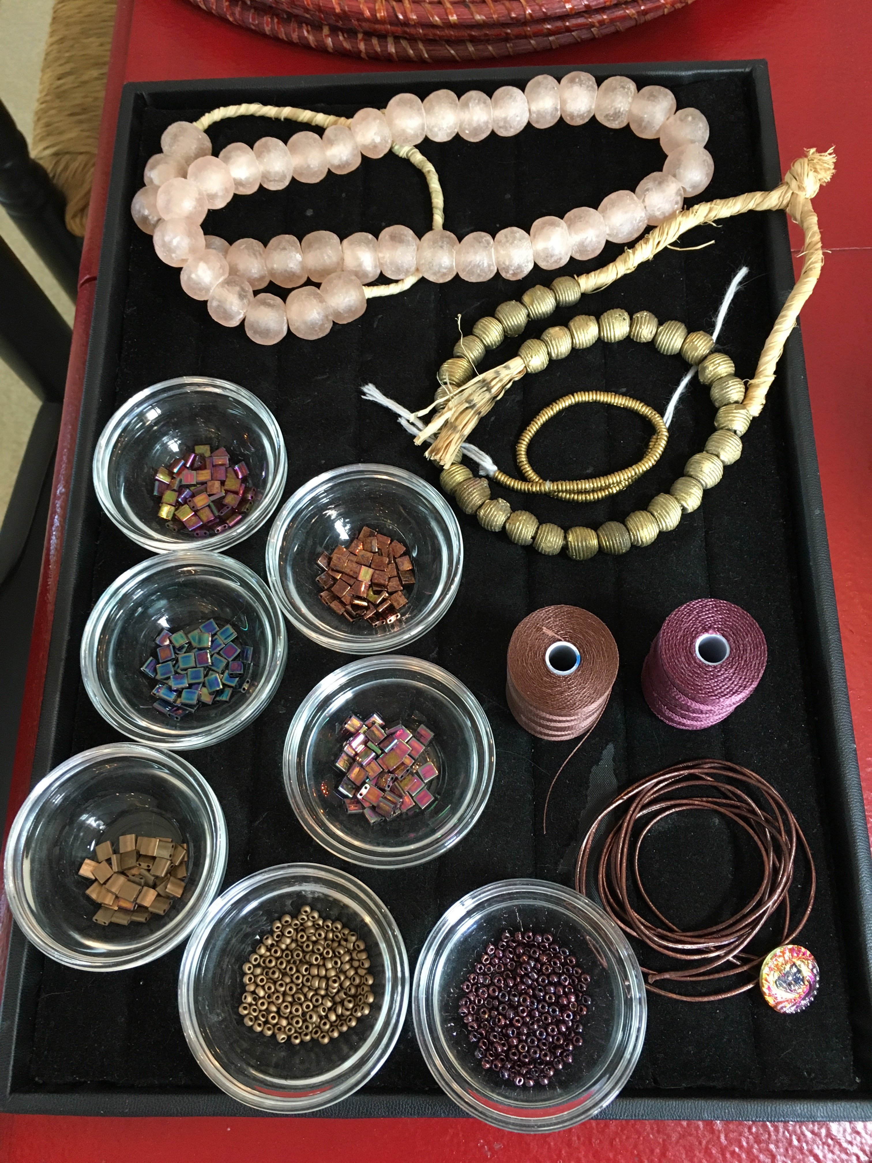 - Planning the design – or just going with whatever inspires me at the moment. I might see one tiny bead and decide that will become a wrap bracelet or a pair of earrings.