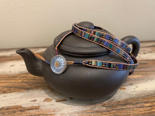 Once you have your materials, it doesn’t end there! You develop an eye for which materials complement each other and how to combine them in the best way. For wrap bracelets, I pick a color of leather, then the beads and then the stringing material. And of course, the button for the closure. By just changing the pattern of the beads and using a different button, I get a totally different look.