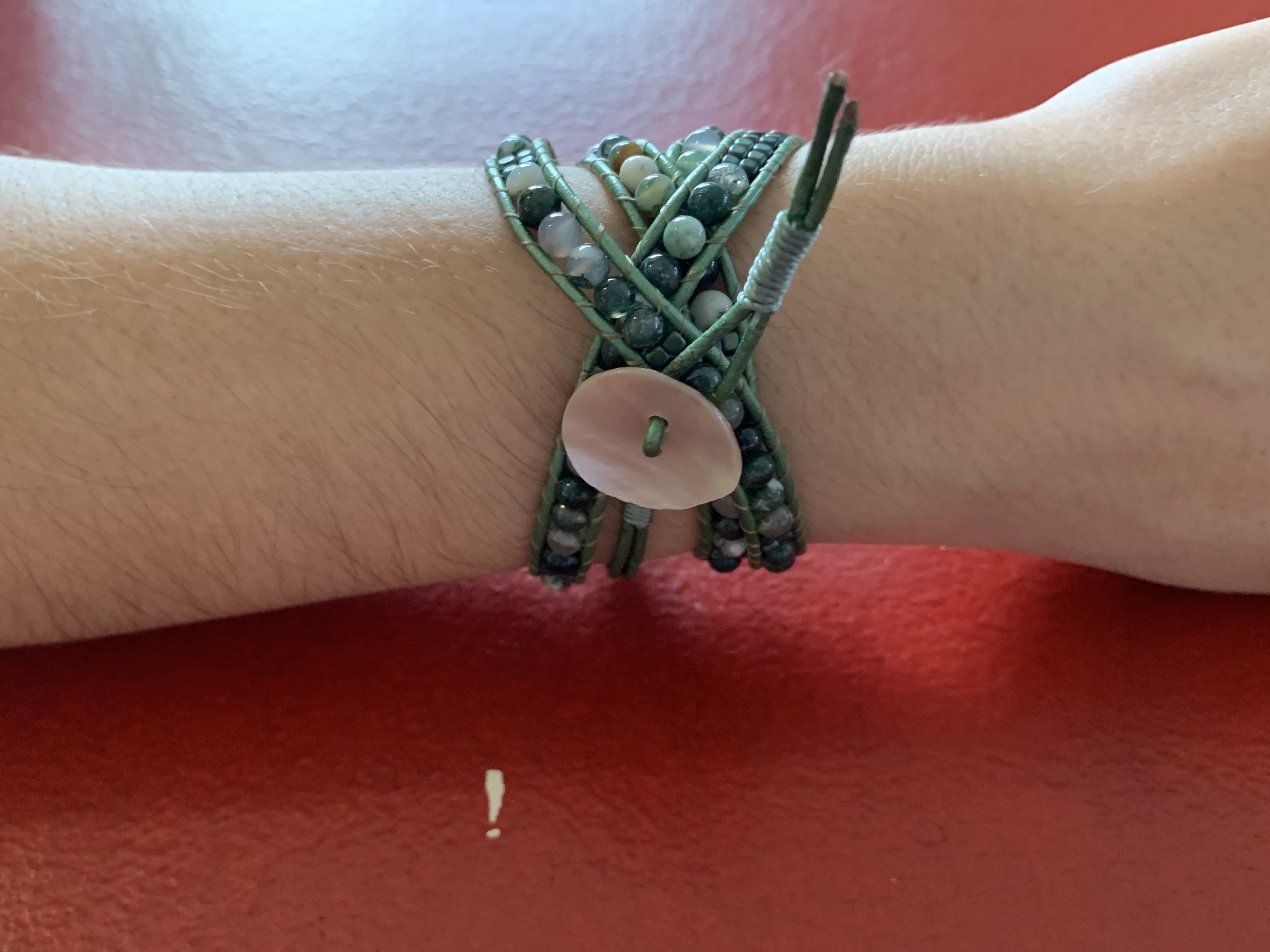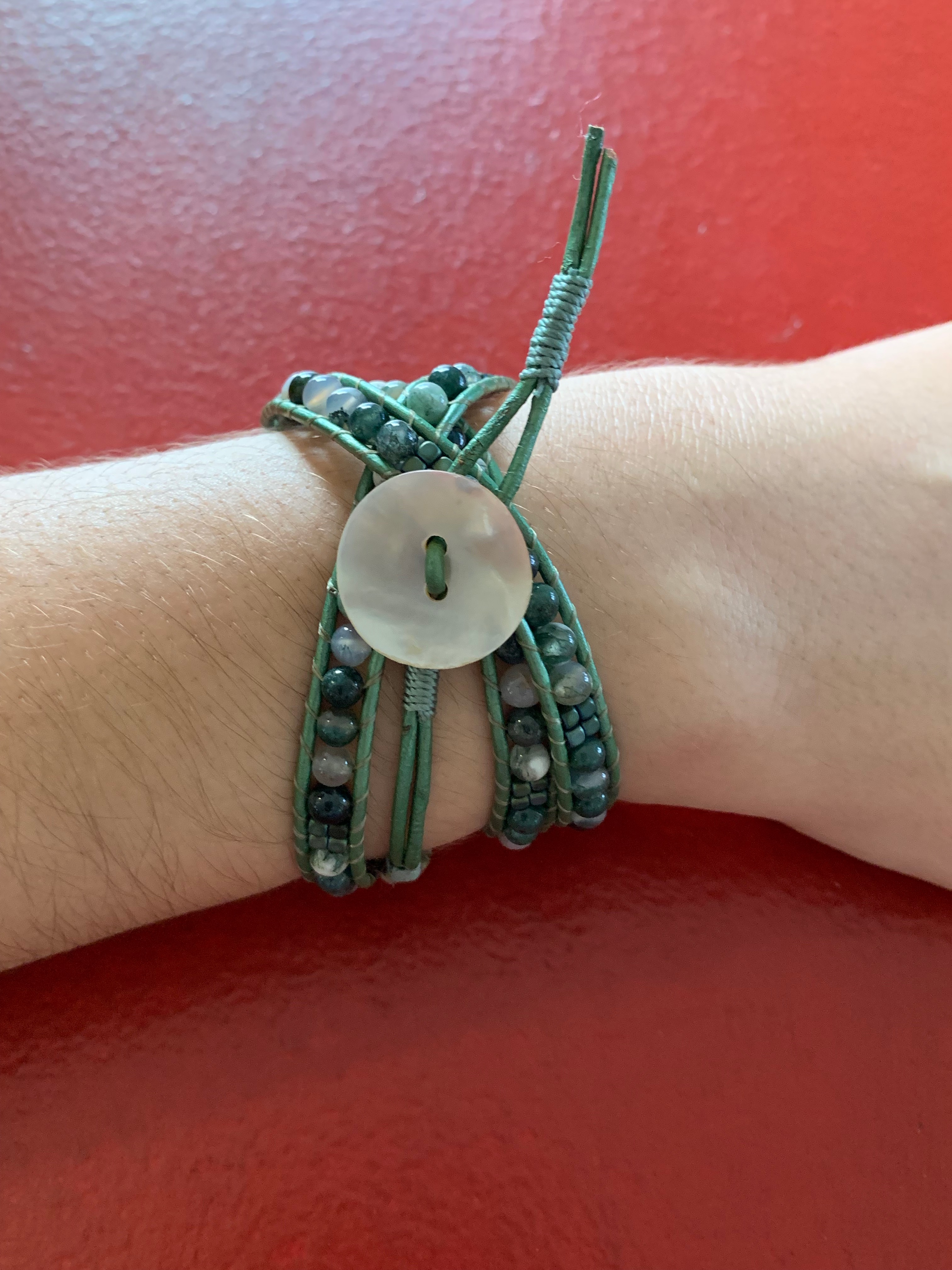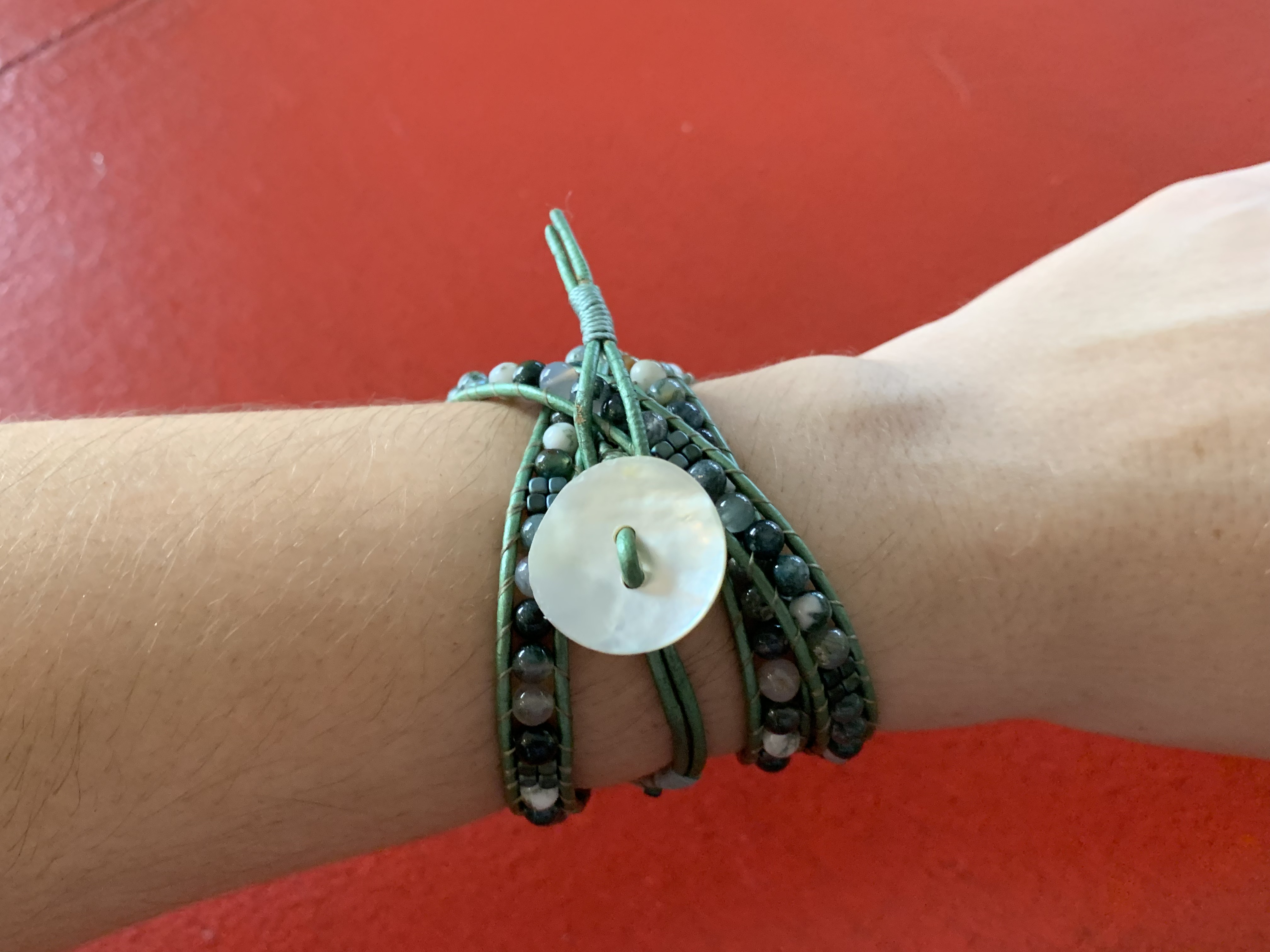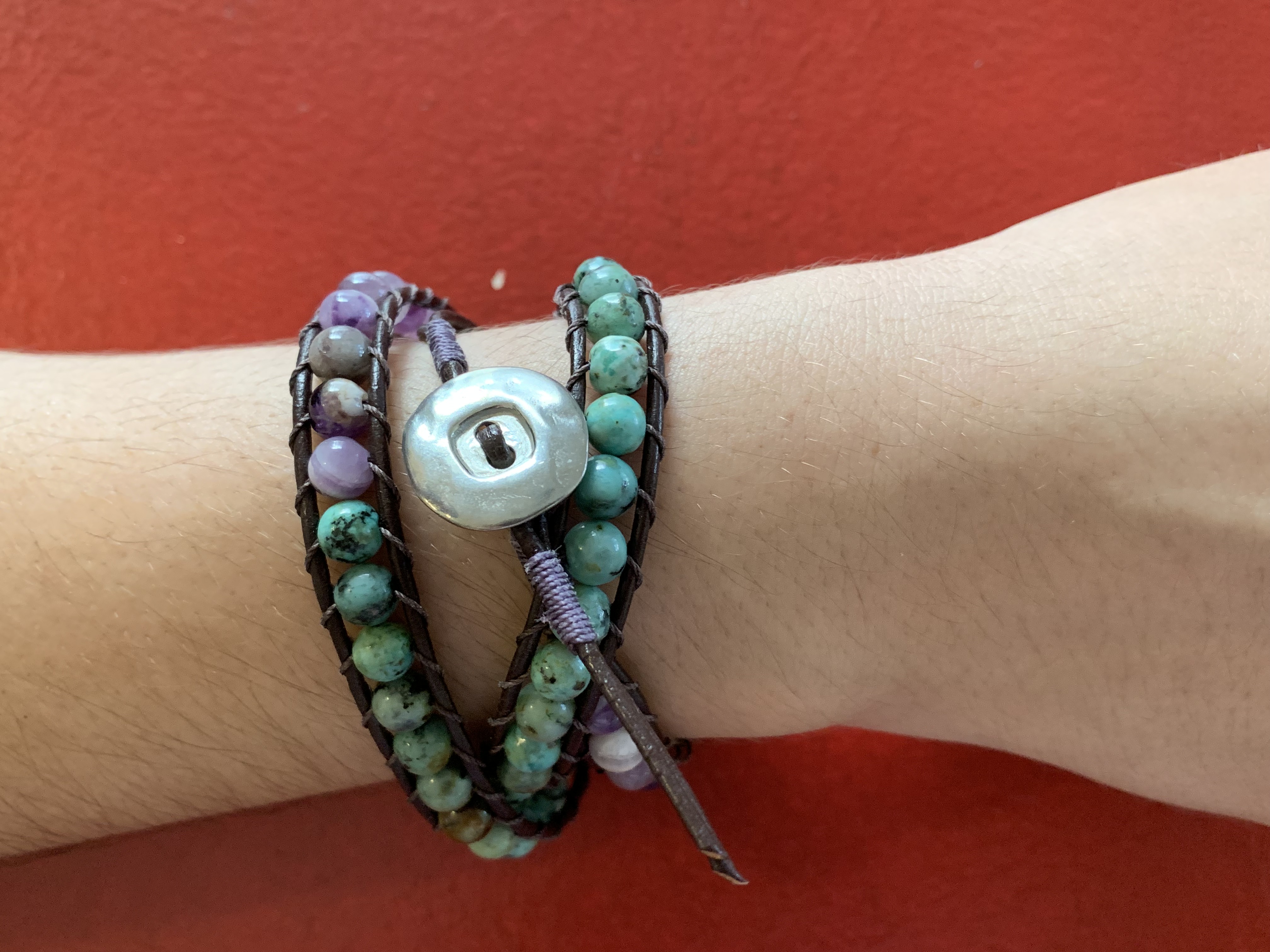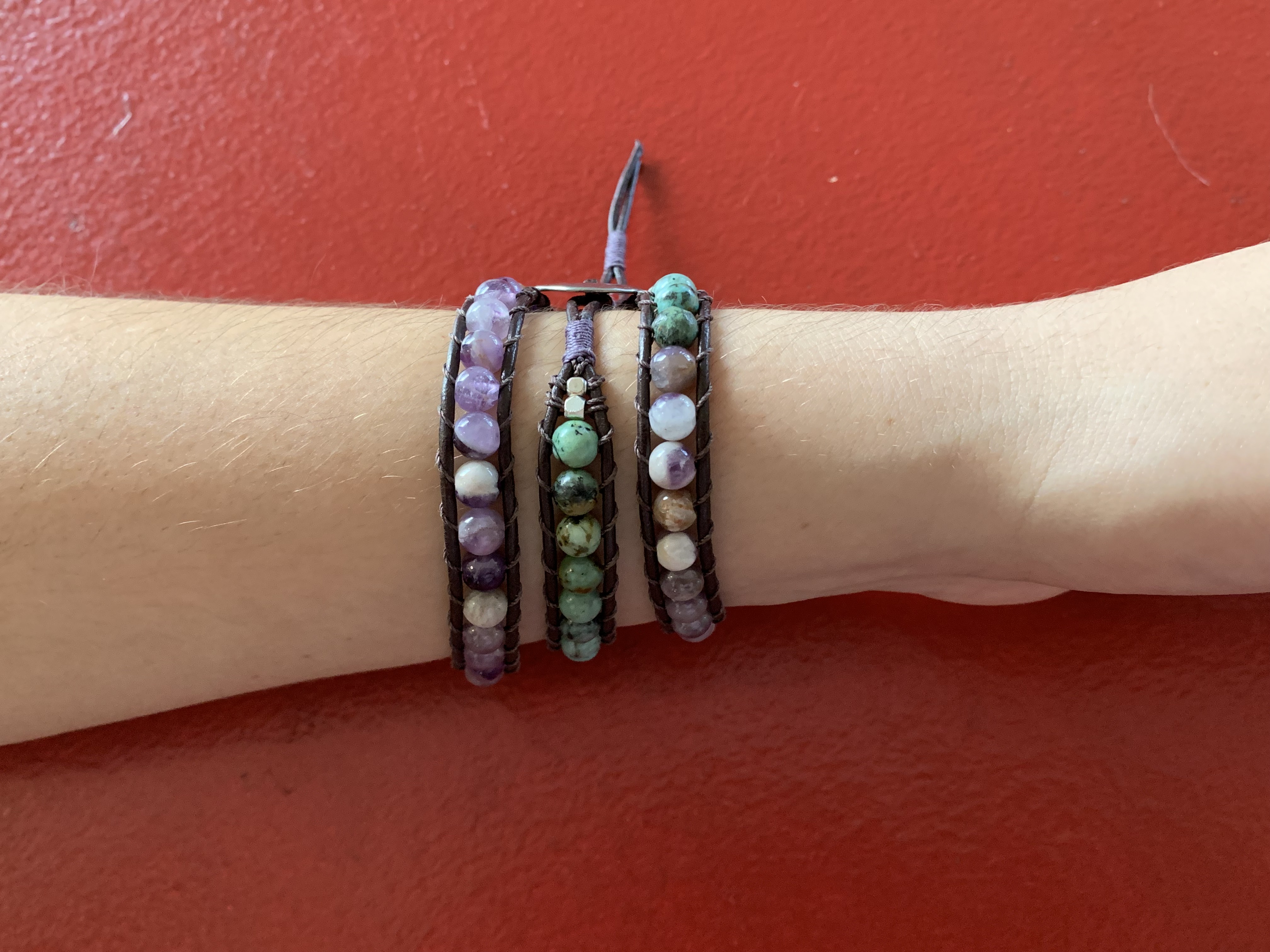 These examples demonstrate how wrap bracelets are usually worn, and how they should ideally fit. As you can see, they’re fitted snugly on the wrist, although they can be worn looser if you choose! Each bracelet has two closure loops for adjustment.