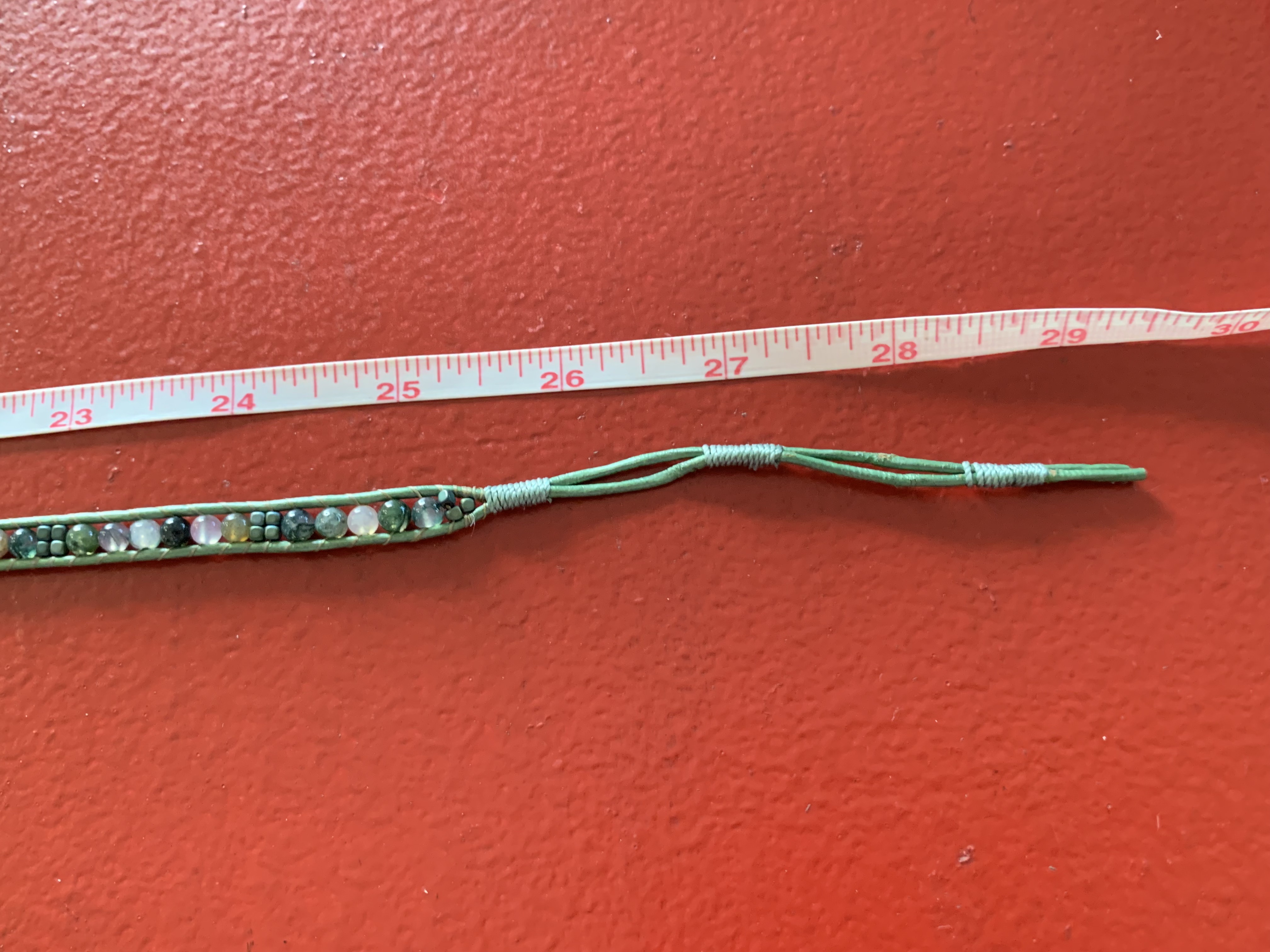The length of the string from the end to the red mark will be the length of your wrist! Do not add length or overlap the ends.